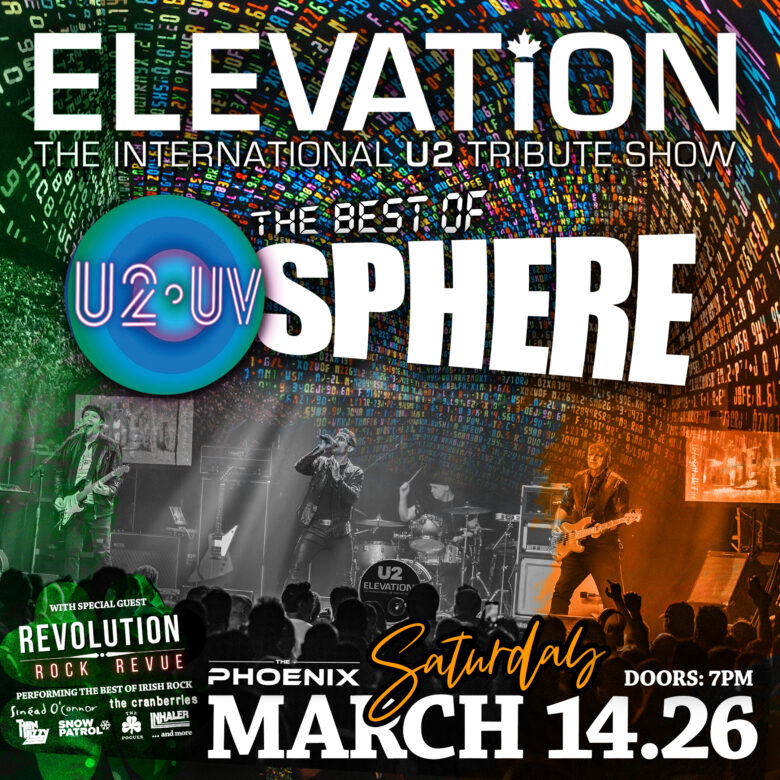 A night of IRISH ROCK AND ROLL! Elevation will perform the Best of U2’s Vegas Sphere show. With special guests Revolution Rock Revue
